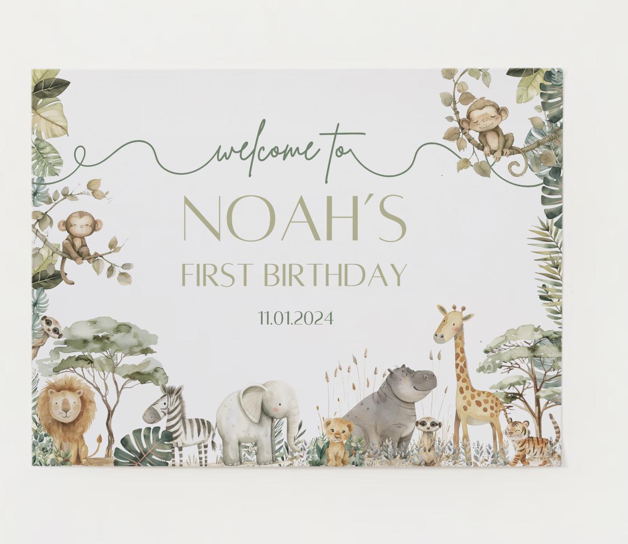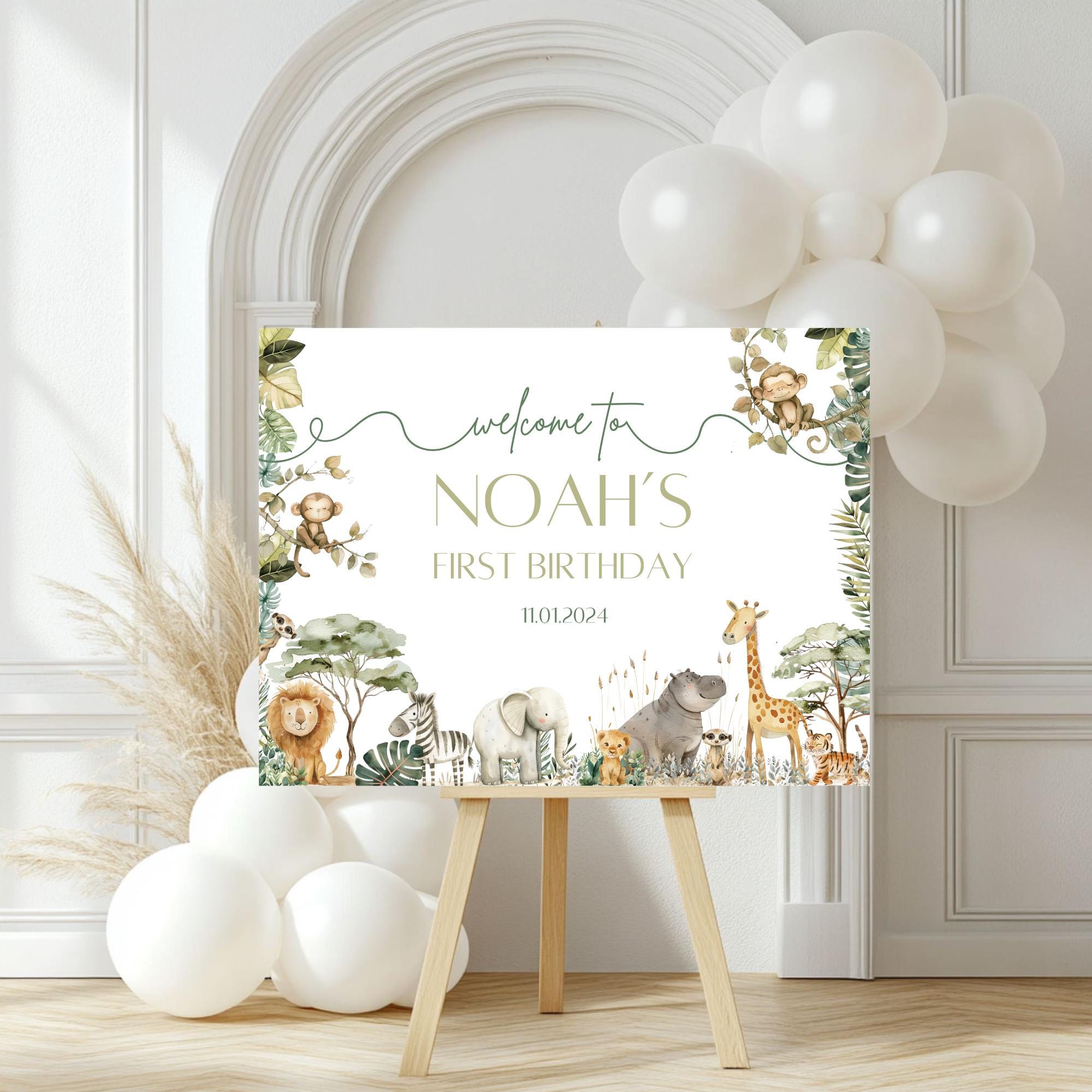 Safari Birthday, Welcome Sign, First Birthday, Wild One Birthday, Digital Download, Editable template, Canva